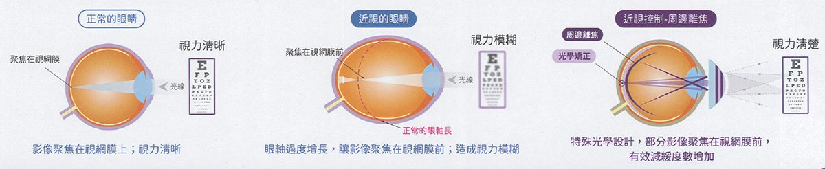 特殊光學設計,部分影像聚焦在視網膜前,有效減緩度數增加。