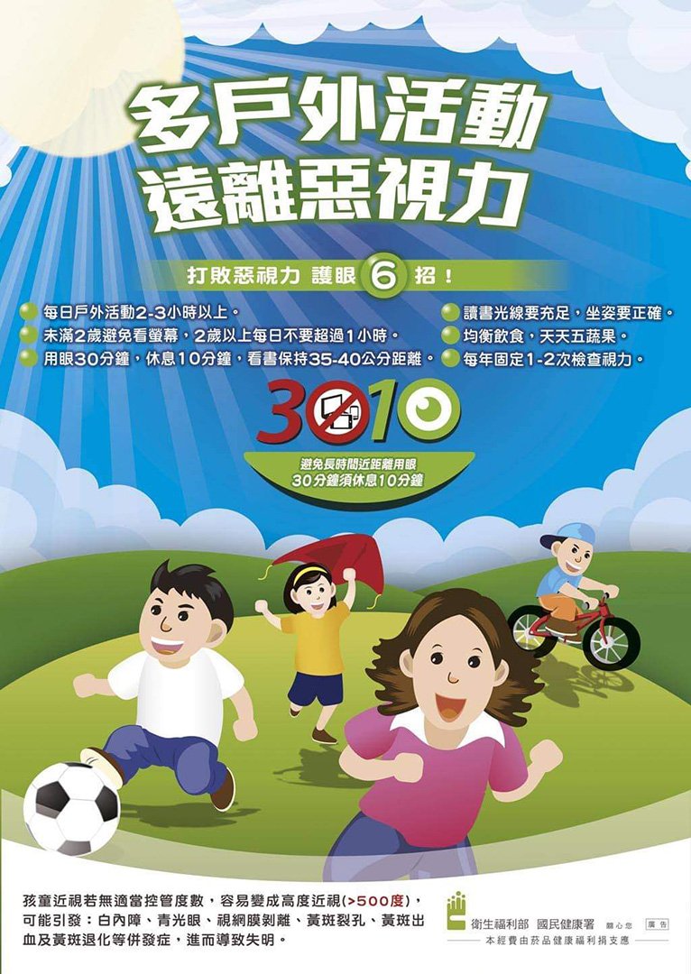 用眼30分鐘,休息10分鐘,看書保持35-40公分距離。